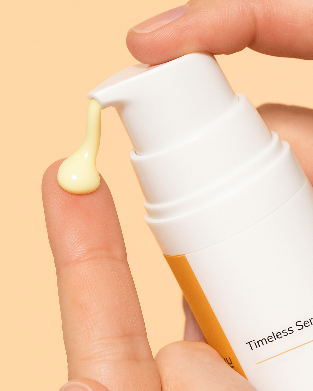 Vitamin C, Retinol und Niacinamid reduzieren sichtbar Pigmentstörungen und stärken die Hautstruktur – für einen klaren, ebenmäßigen Teint. -